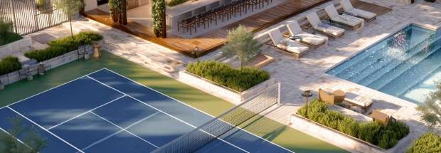 Pickel Ball Court, Barbeque Deck and Pool Deck with Loungers